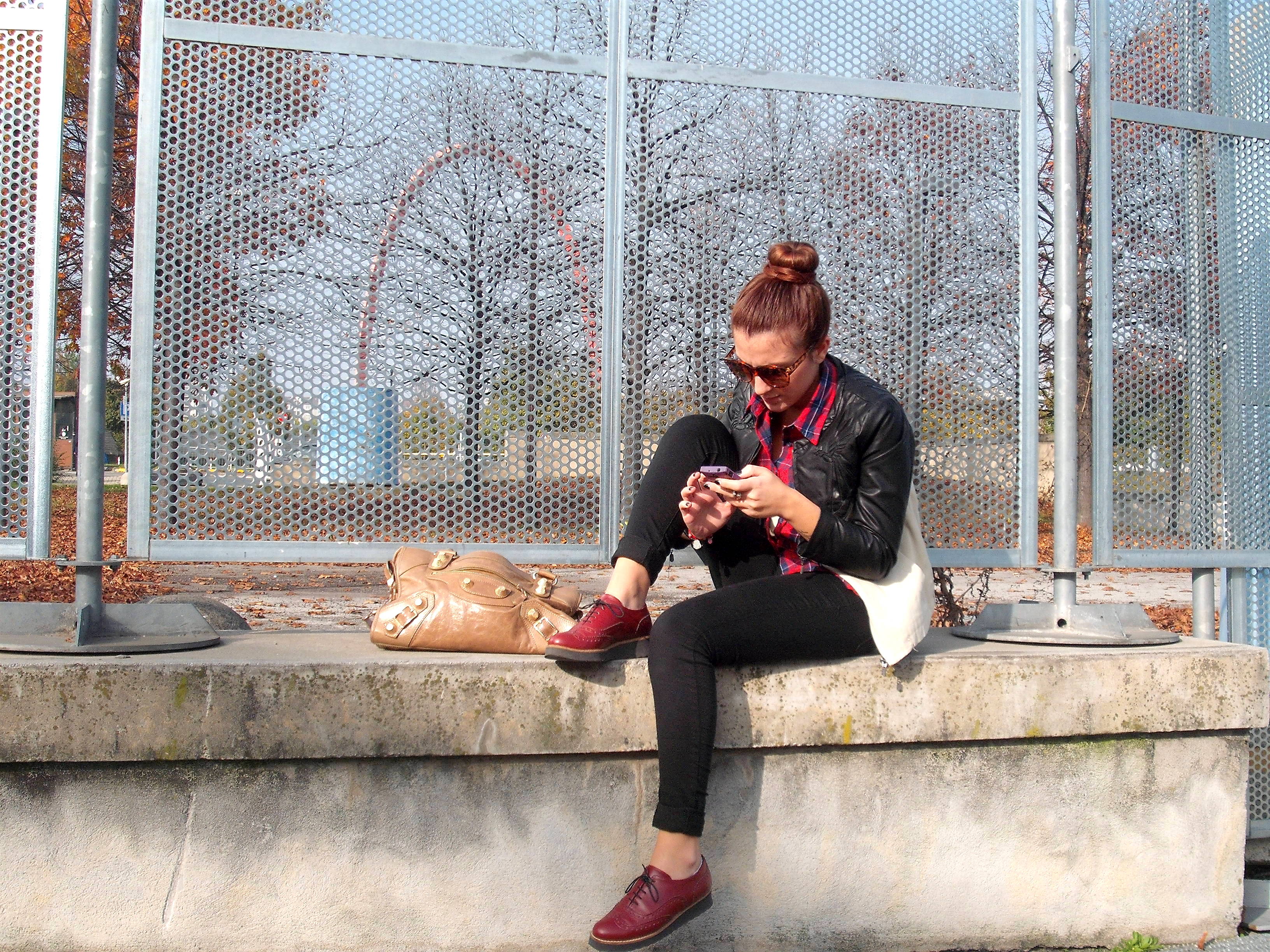 Ho optato per un  outfit comodo ma sempre e comunque accessoriato. Camicia tartan, giubbotto di pelle e le mie amata inglesine rosse. Spero che l’outfit vi piaccia, presto tutte le foto di ARTISSIMA.