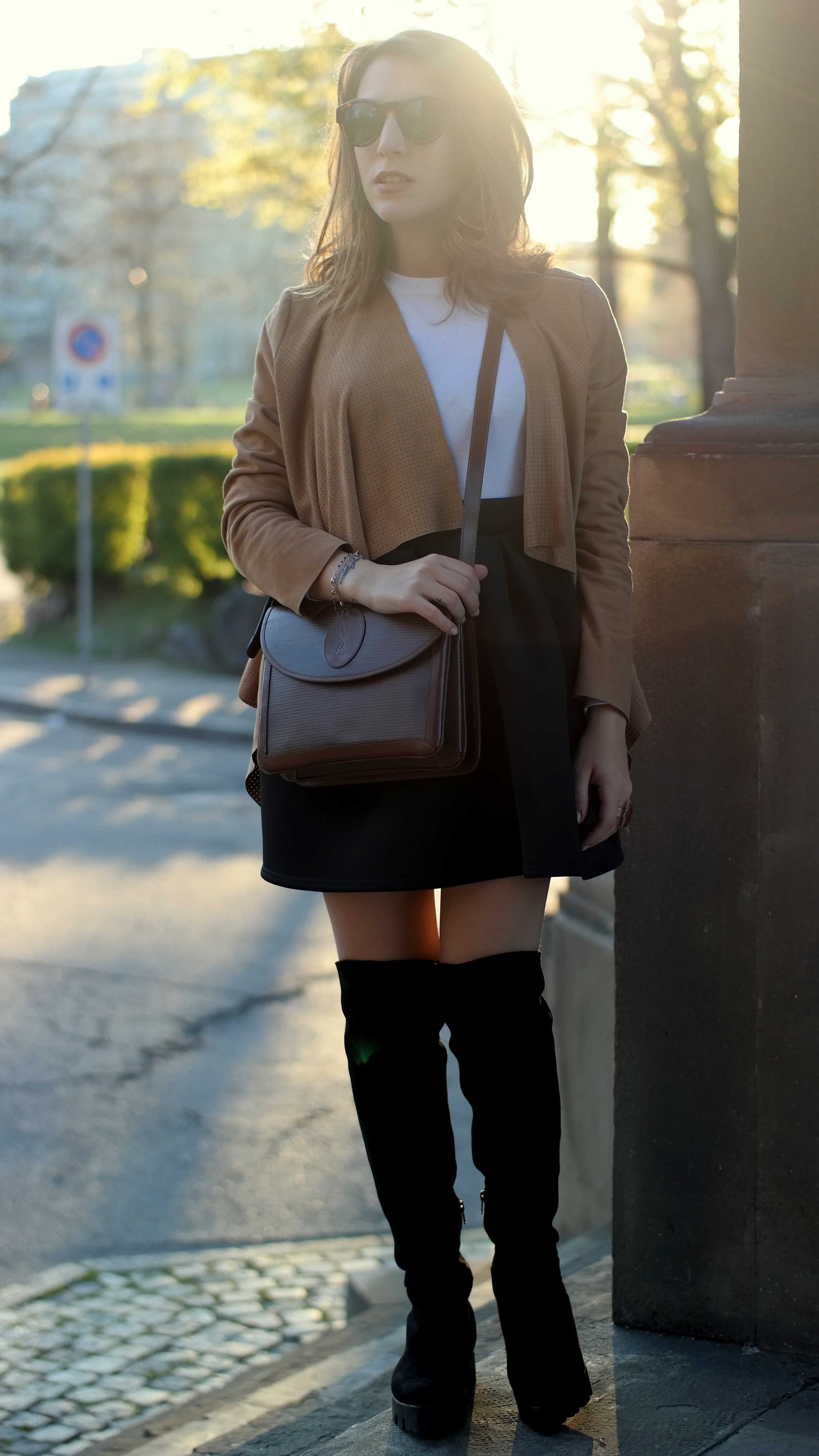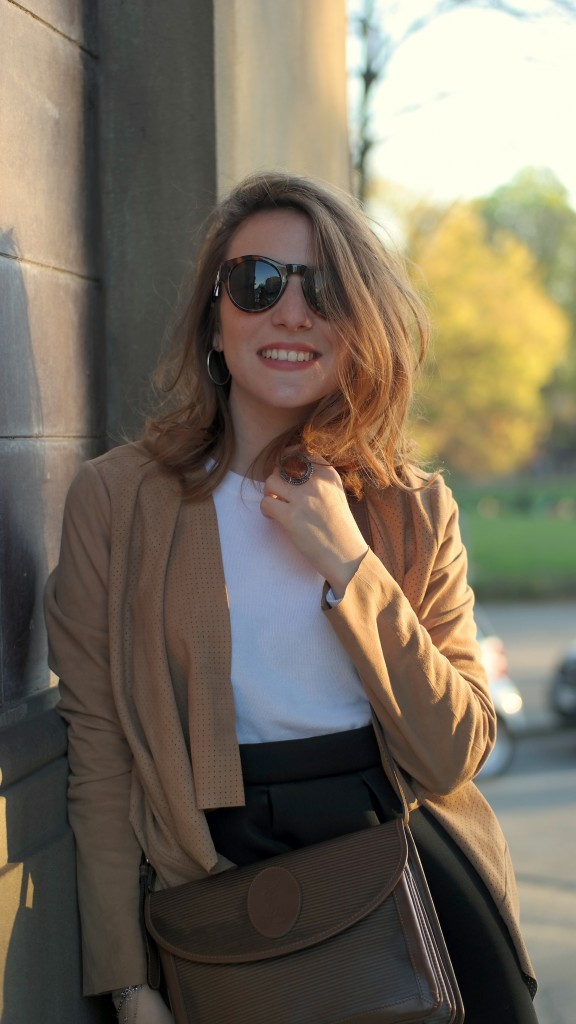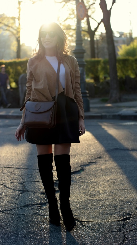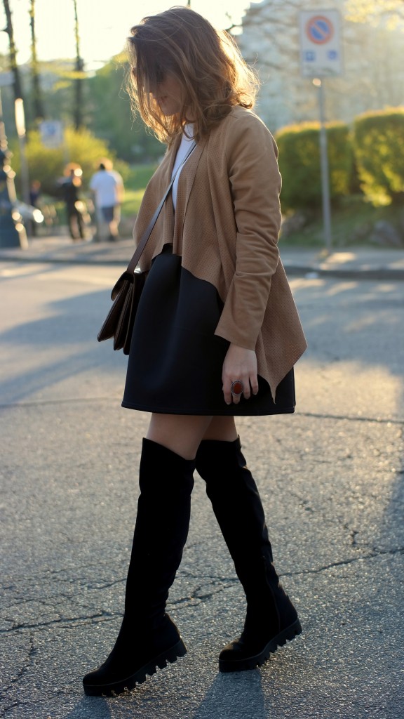Il look perfetto per questa stagione, ho mixato il tessuto tecnico e camoscio, un mood che richiama lo stile da cavallerizza. Il modello di stivale che indosso è un’anteprima assoluta della nuova collezione Walter Pignataro, a/i 2015-16 che ho deciso di proporvi già ora in questo nuovo look. Capelli spettinati, la pelle che comincia a prendere colore e le lentiggini che escono fuori 🙂