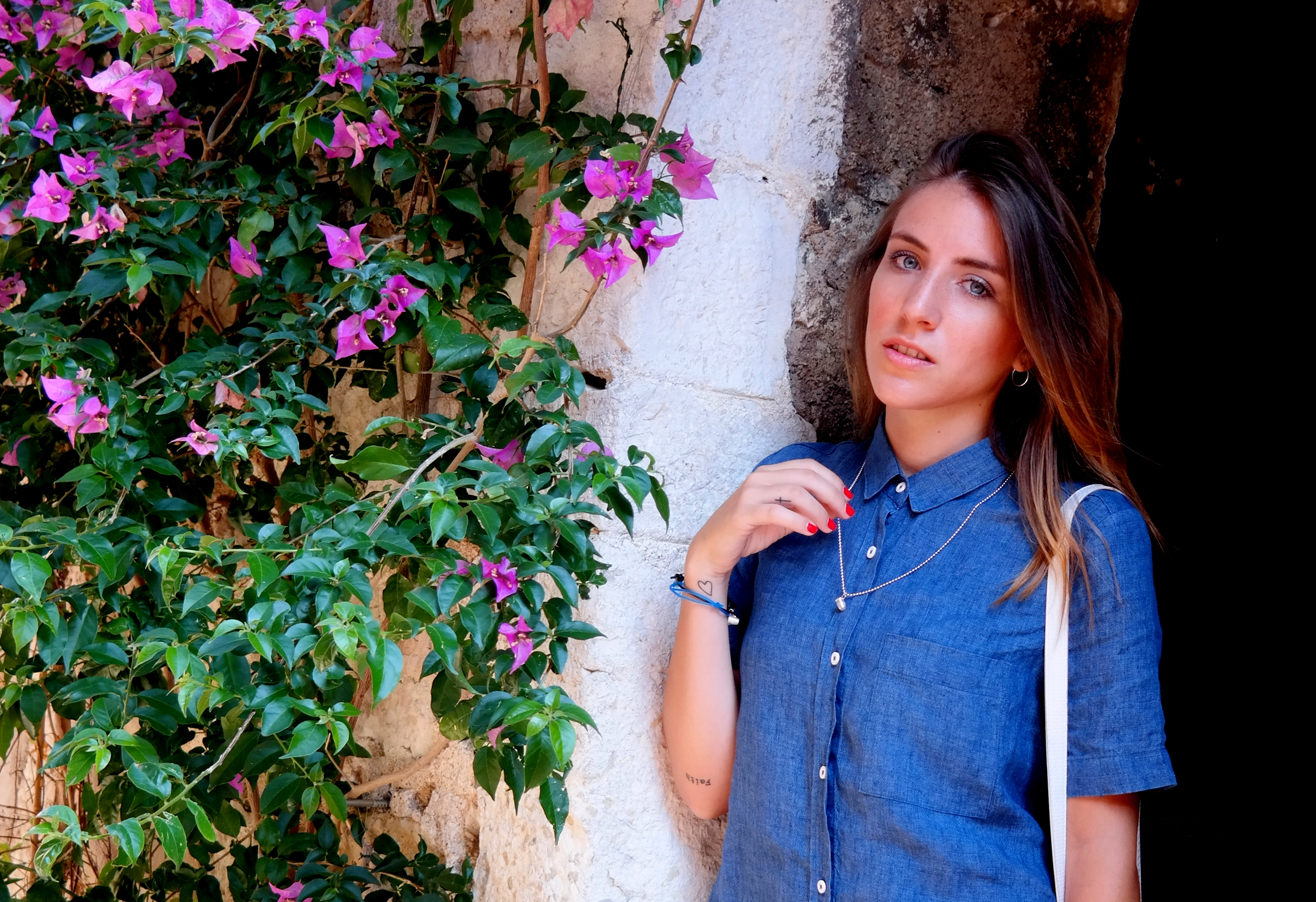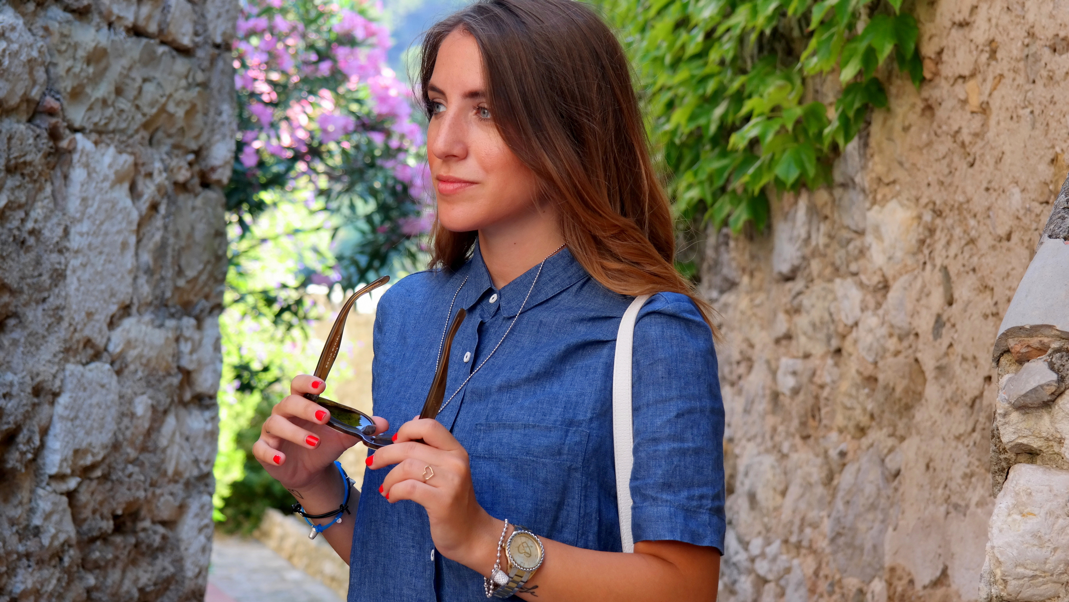 Sfumature di blu in questo  nuovo outfit comodo e fresco  ispirato al colore del mare visitando il paese di Eze in Francia, indossando i braccialetti e la collana in argento firmati Keep Out.