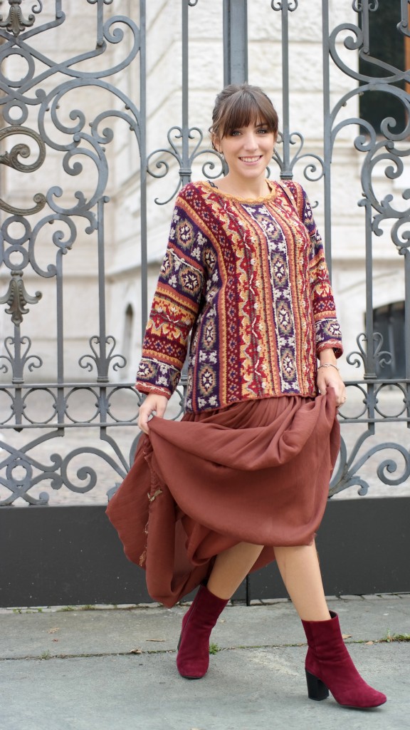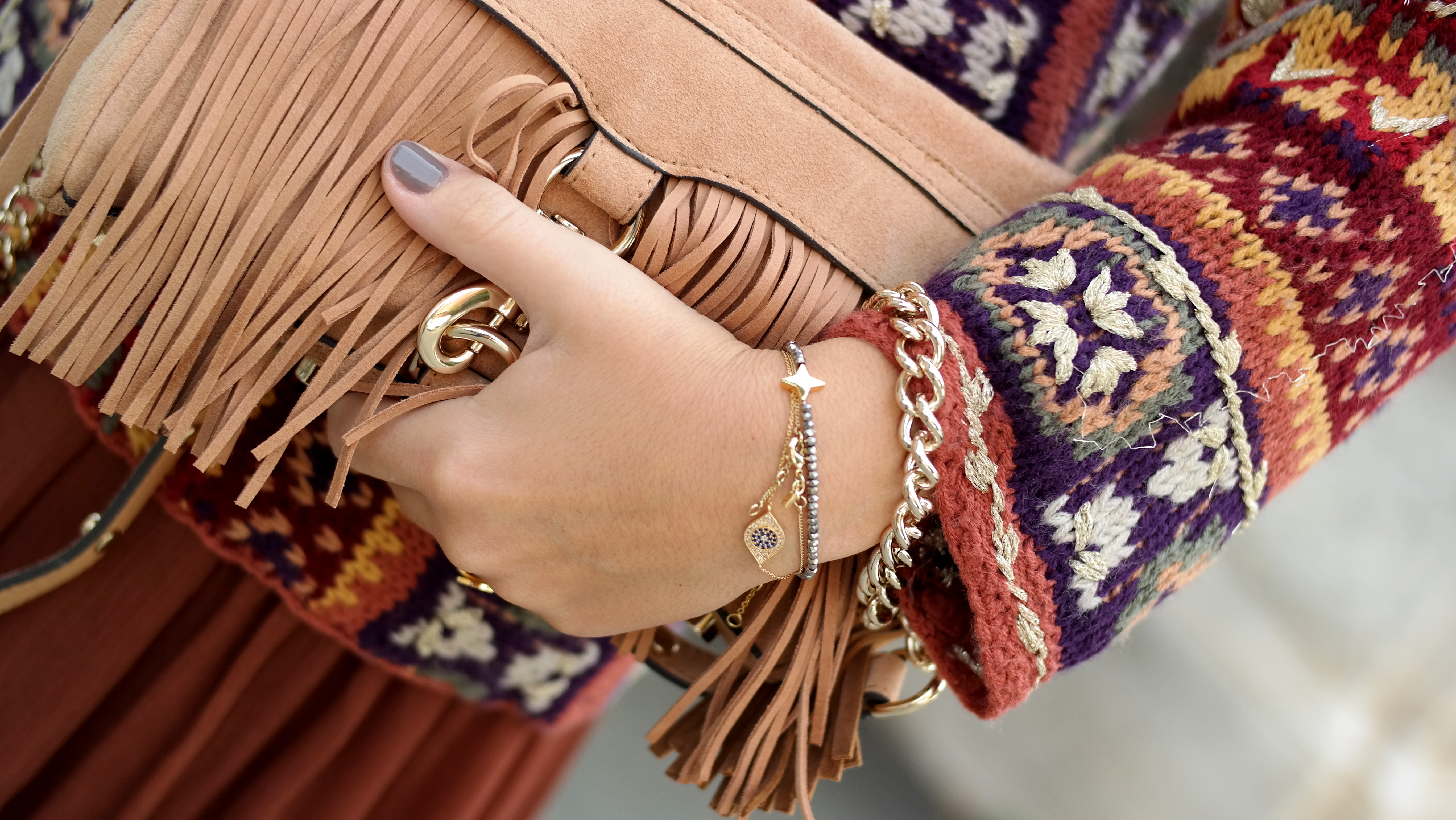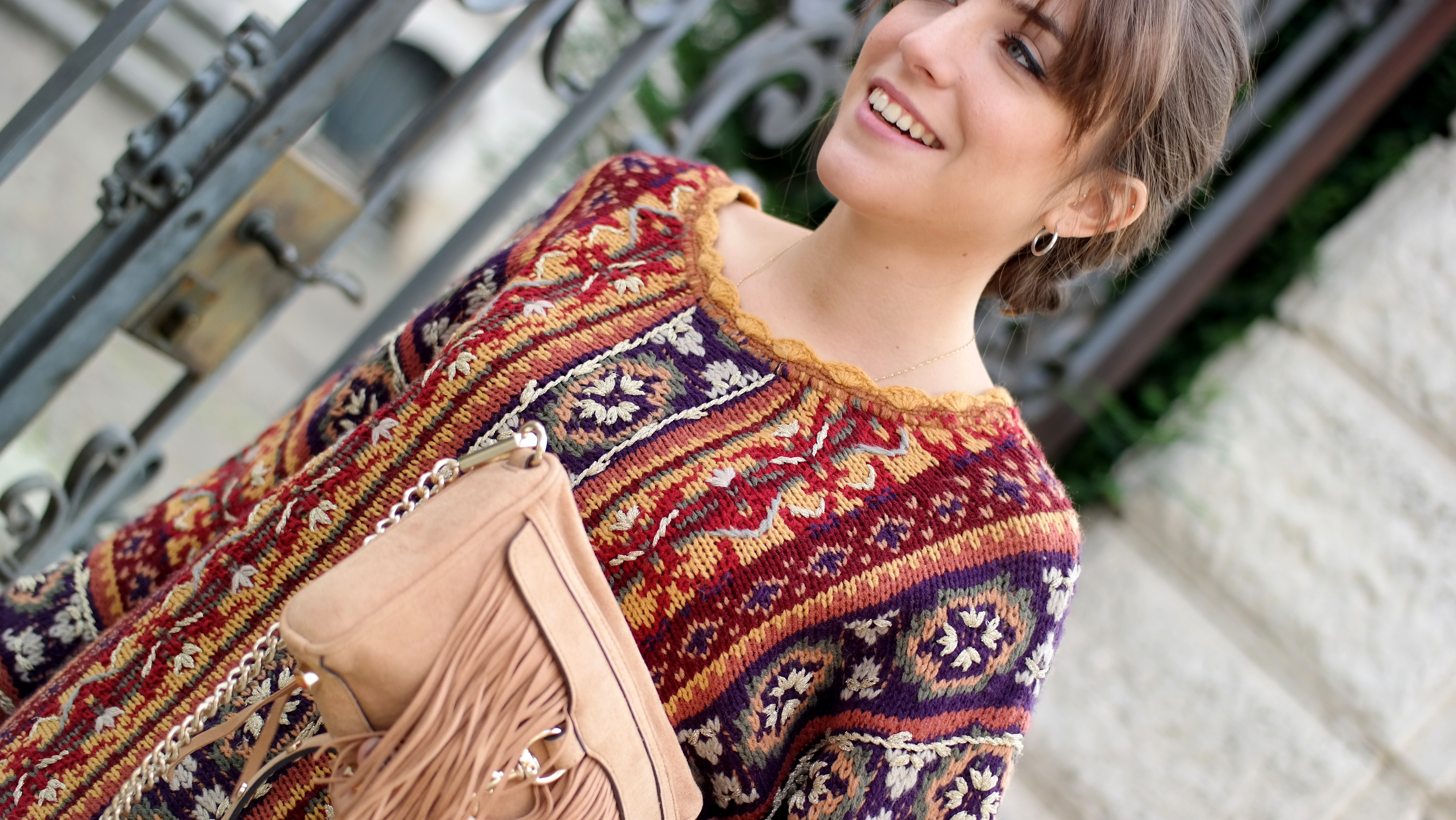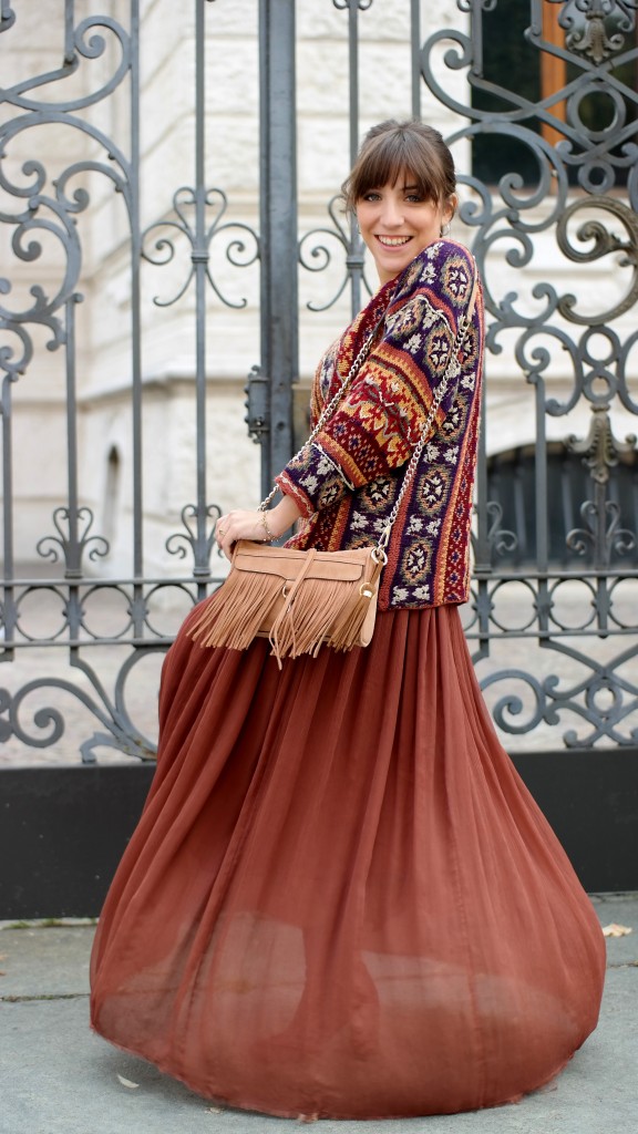 Frange indossabili ovunque che oggi vi  propongo in questo nuovo outfit presenti sulla mia nuova tracolla Rebecca Minkoff presa su Zalando.it. Una borsa versatile che vi proporrò in alcuni look diversi tra loro nei prossimi giorni. Intanto, cosa ne pensate di questo look?  La protagonista è sicuramente lei, questa nuova tracolla che adoro, una maxi gonna e un maglioncino lavorato a mano molto caldo e colorato del brand Mes Demoisselles.