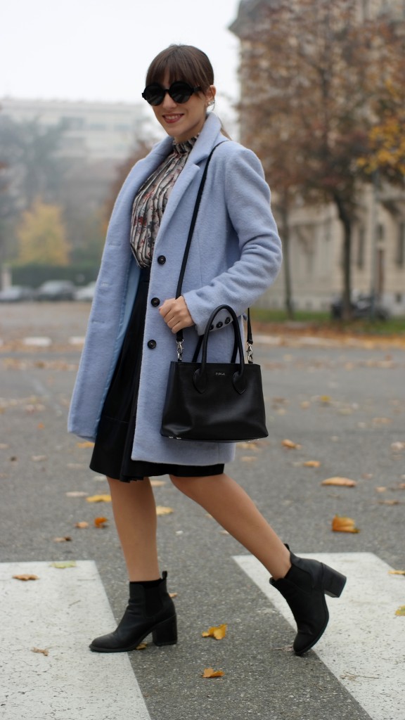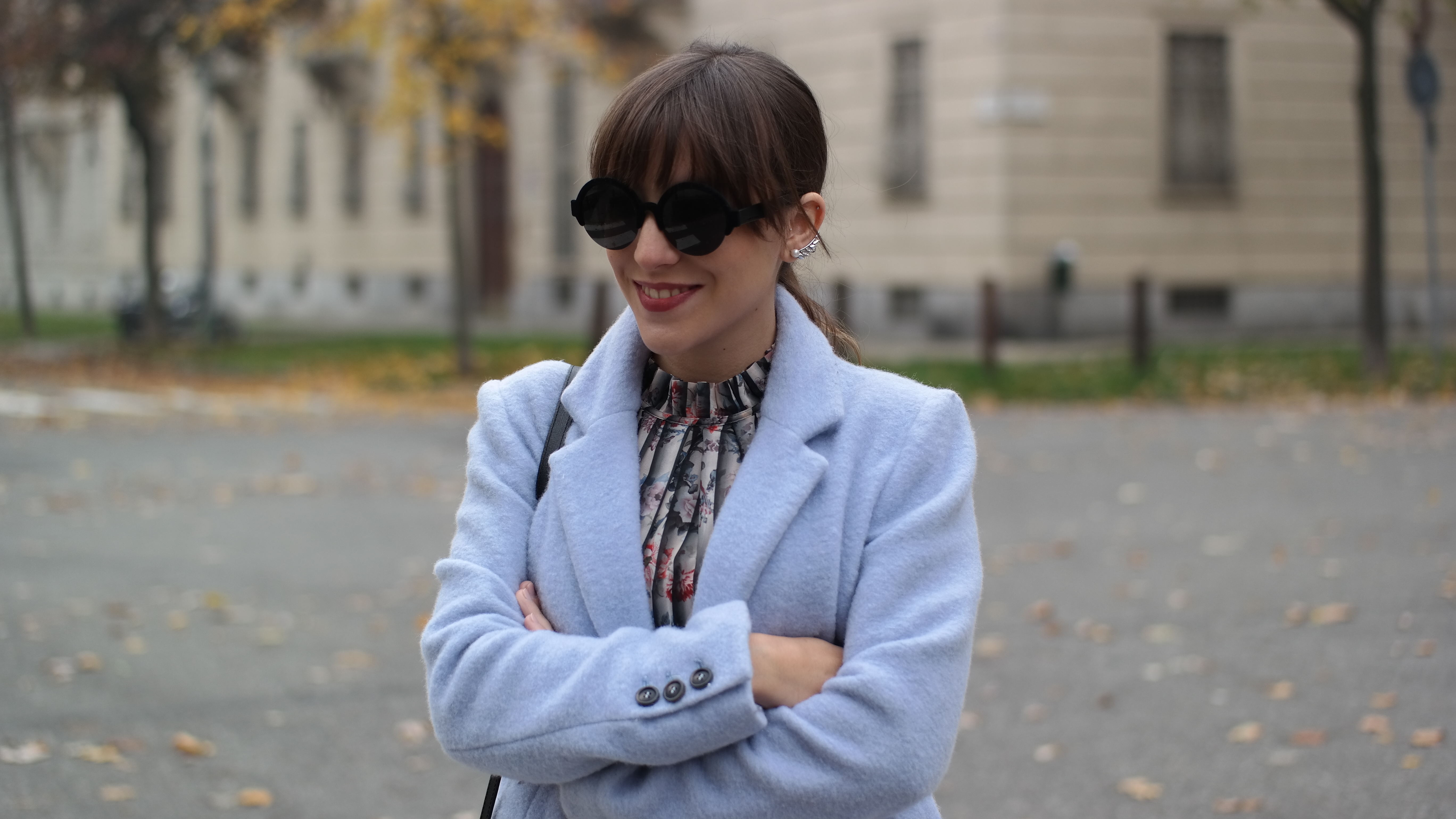 Questo inverno il colore è prediletto quindi ho optato per un cappotto color pastello, carta da zucchero, abbinato ad un top ( vestito) con motivi floreali per un mood glamour e frescho. I capelli rigorosamente lisci naturali raccolto in una coda di cavallo bassa, un look che spero vi piacerà e da cui potrete trarne ispirazione!
