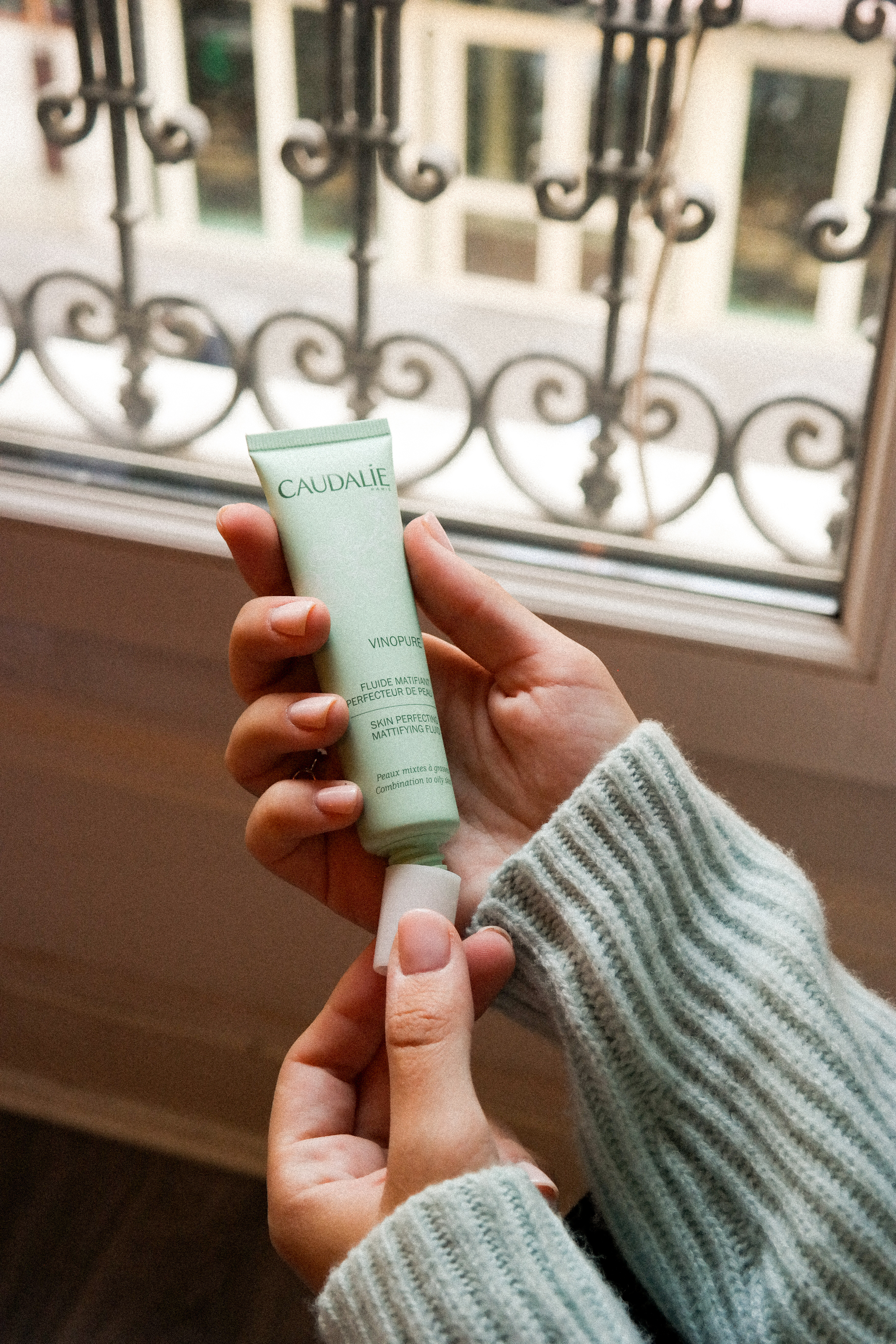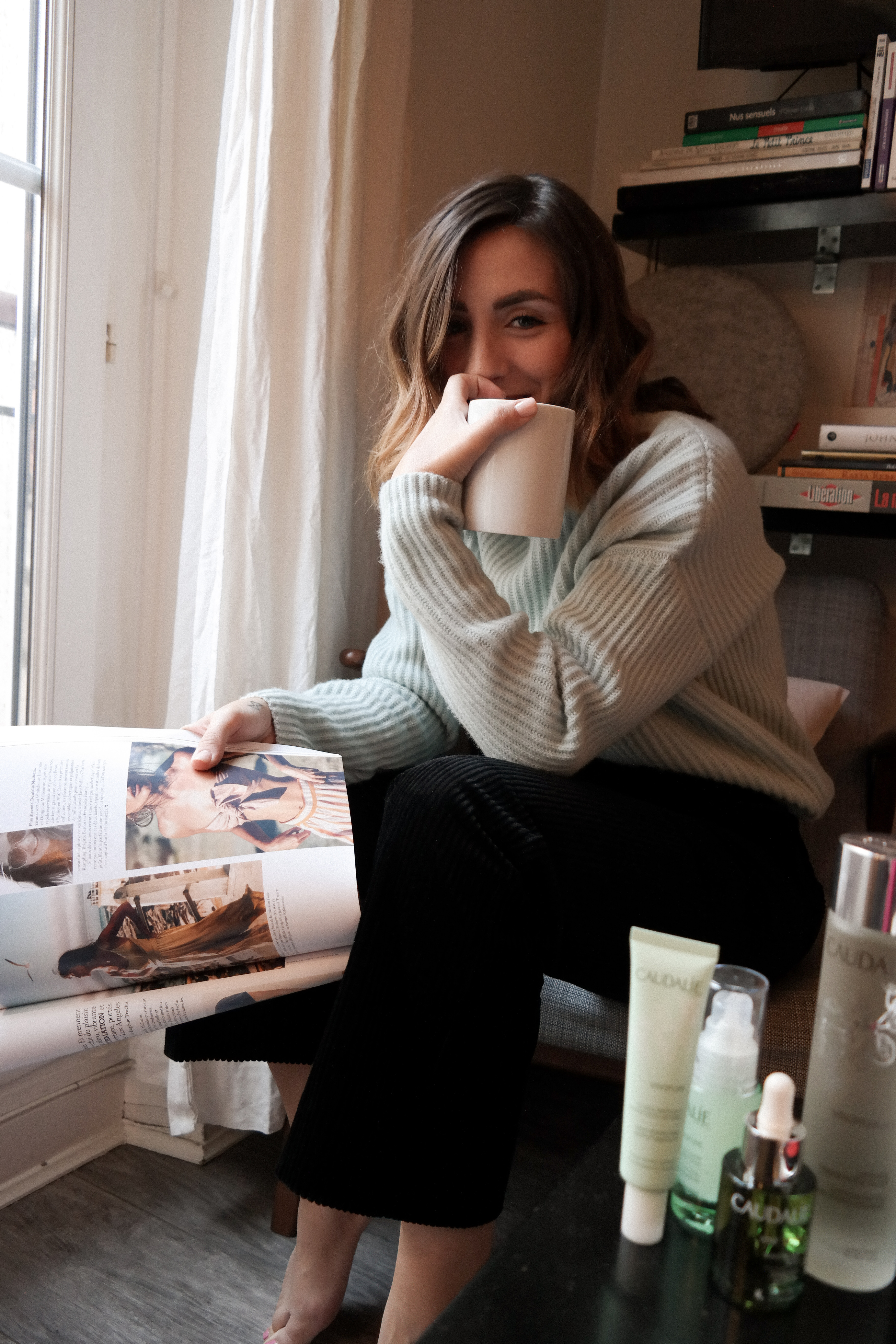 8.00 A.M… I made green tea the way I like: with two little madeleine (a typical Northern France biscuit)… the air is fresh, the sky is clear and the sunshine is coming trough the window. My Parisian journey began an hour before! Today, like yesterday, I have a lot of events, fashion shows, presentations.These steps are the same every day during Fashion Week period, which lasts almost a month. I’m often out of the house: habits aren’t the same, there really isn’t a routine, everything is always changing, like the amount of hours I sleep, lunches, dinners. Air pollution really affects my facial skin, as it is more exposed to the contaminations. But when it comes to skincare my go-to is Caudalíe: everywhere I go it’s always with me. For the last 6 months my beauty routine consists of Caudalíe Products, my “followers”: early in the morning, during the day and the night before sleeping.
