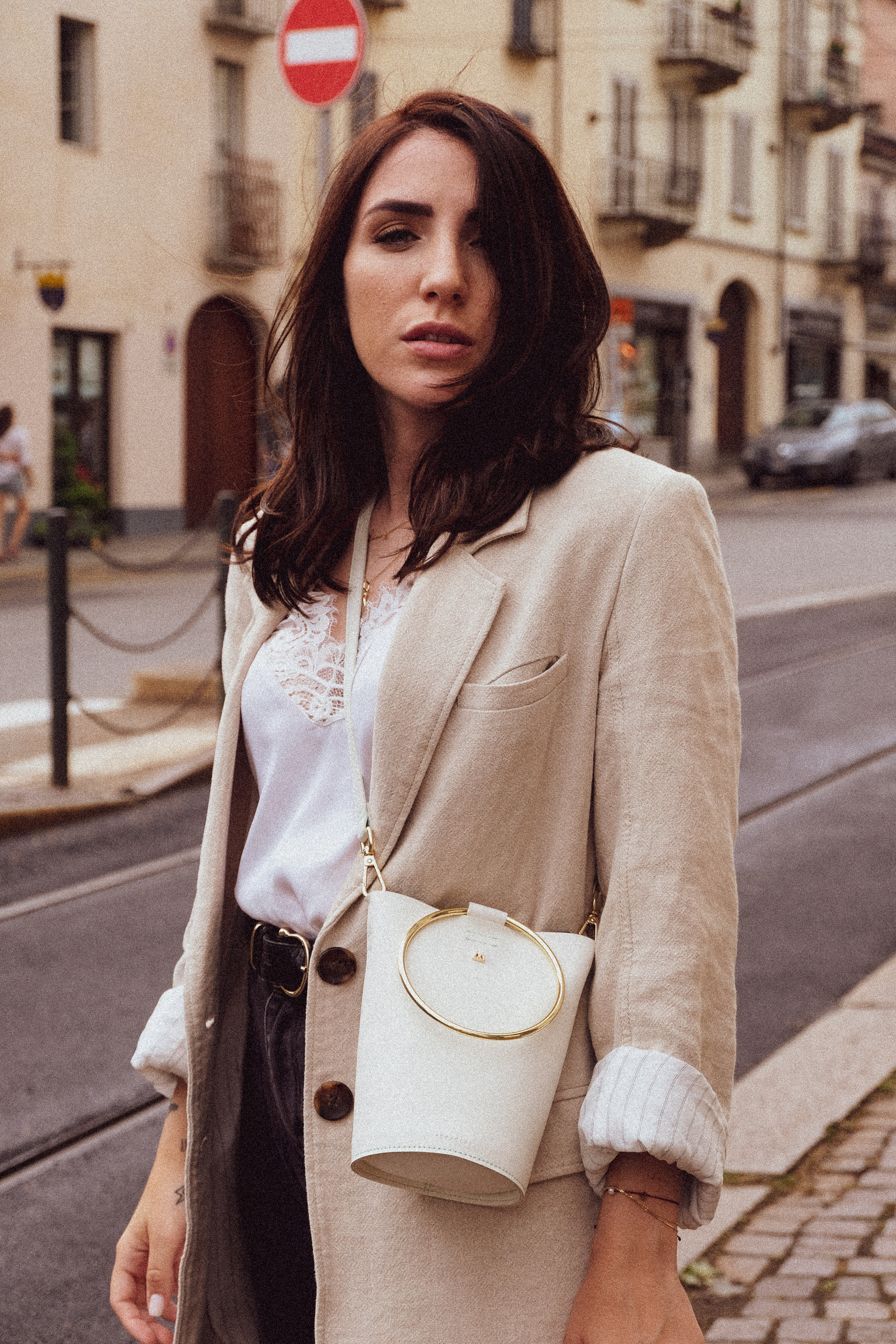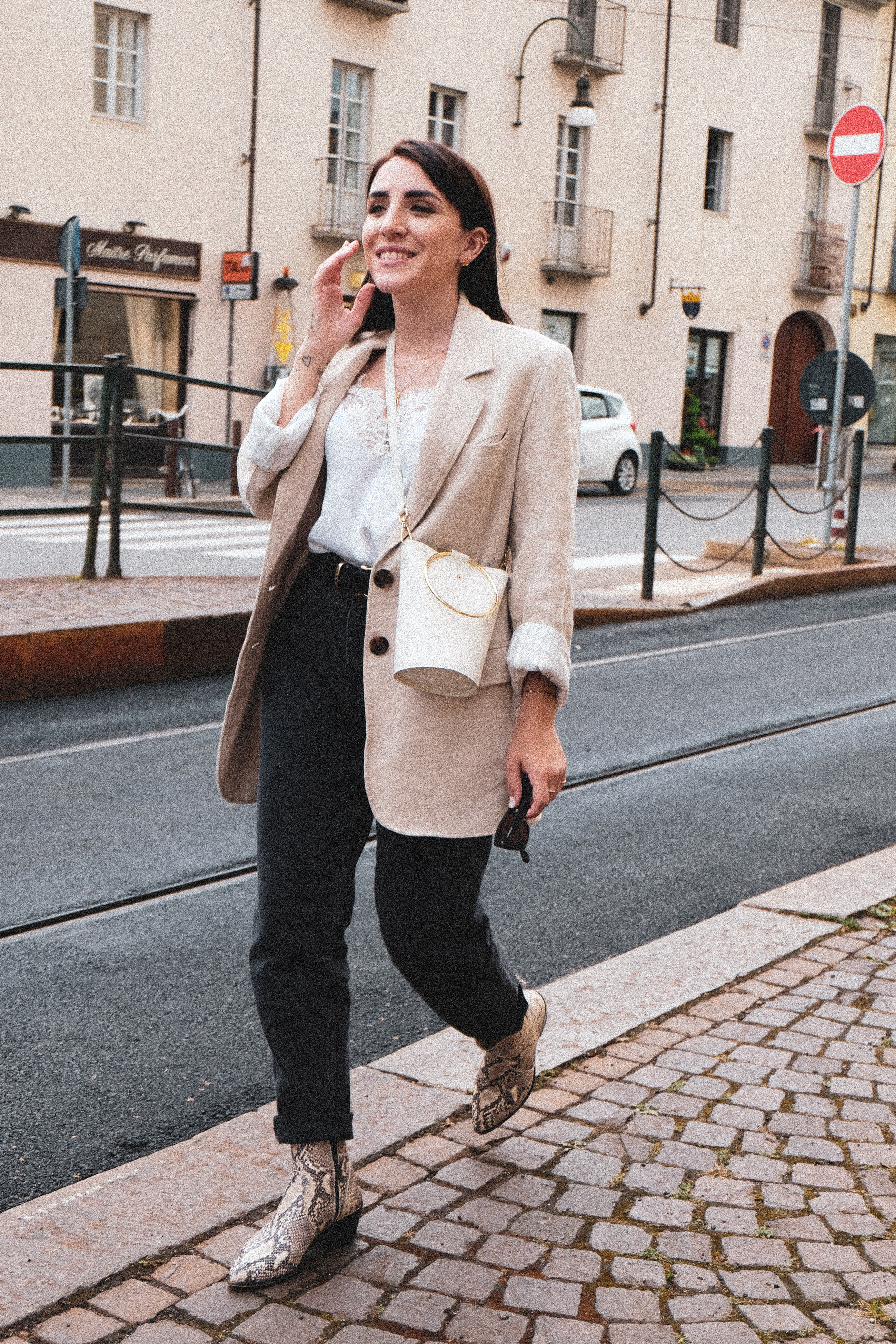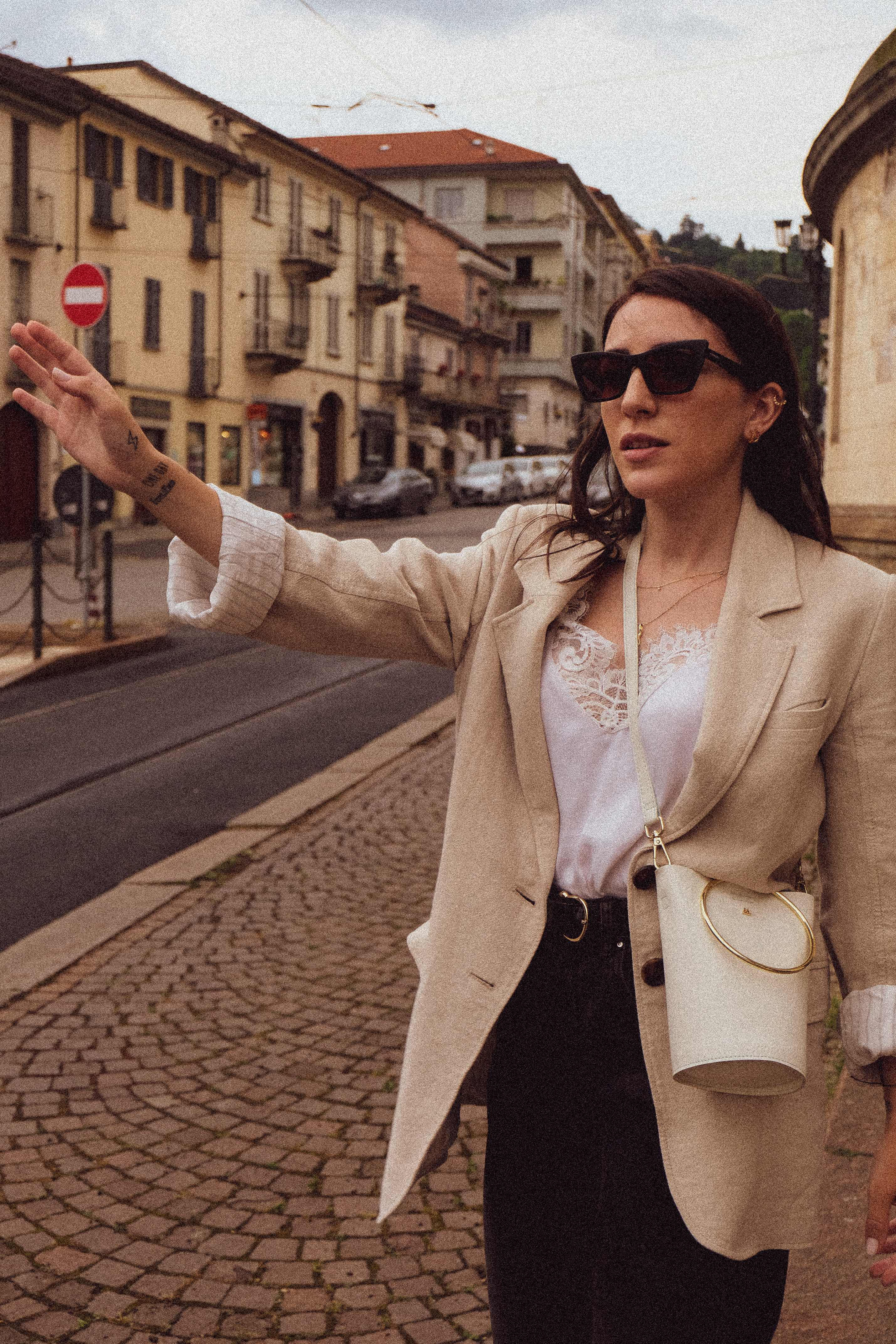 Office shoes | H&M blazer | & Other Stories shirt | Pd Paola jewelry bag | Carrera sunnies